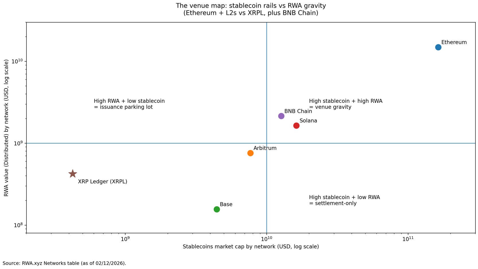 | XRPL stablecoin 30D transfer volume | $1.19B (as of 02/12/2026) | +57.52% | “Venue” requires flow, not just balances—this is the best quick proxy for settlement activity on XRPL. | RWA.xyz XRPL network page. (RWA.xyz) |
