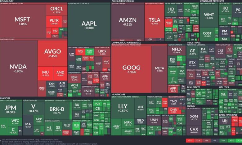 Today’s stock market reflects a volatile landscape with a notable downturn in the technology sector, highlighted by declines in major companies and mixed results across various industries.