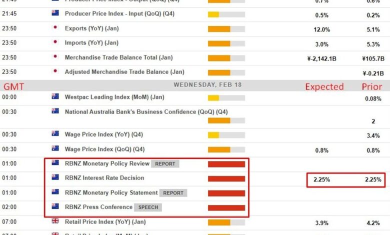 Economic and event calendar in Asia Wednesday, February 18, 2026 – RBNZ rate setting day