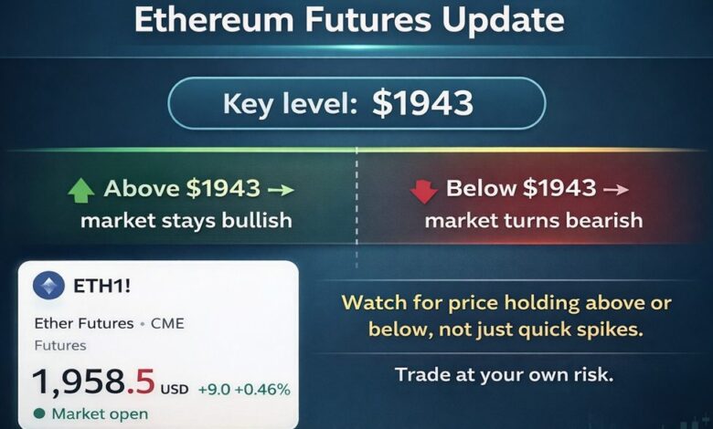 Ether futures are trading near $1,960 after a volatile stretch that saw sharp downside pressure followed by responsive buying. The broader crypto space remains sensitive to macro headlines and equity sentiment, but ETH is currently attempting to stabilize rather than extend lower.