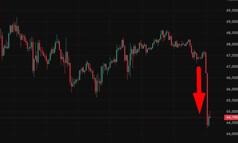 Bitcoin drops ~5% in a short window, slipping under US$65,000