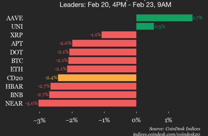 Leaders: AAVE (+1.7%) and UNI (+0.5%).
