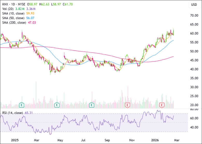 Here’s why: KNX is also a massive general freight operator, and that side of the business is struggling badly right now. The data center tailwind is there, but it gets buried under the weight of everything else the company does.