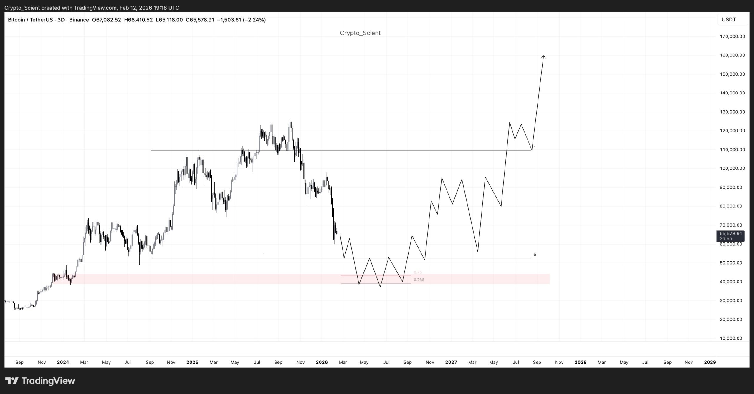 “I expect that region to be filled before a meaningful bottom forms,” Crypto Scient told X followers on Feb. 12.