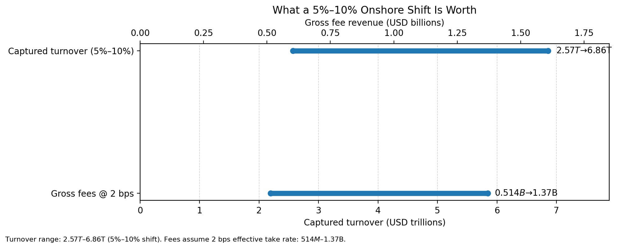Onshoring succeeds when regulatory clarity combines with better user experience, credible benchmarks, and capital efficiency, not merely legal permission to operate.