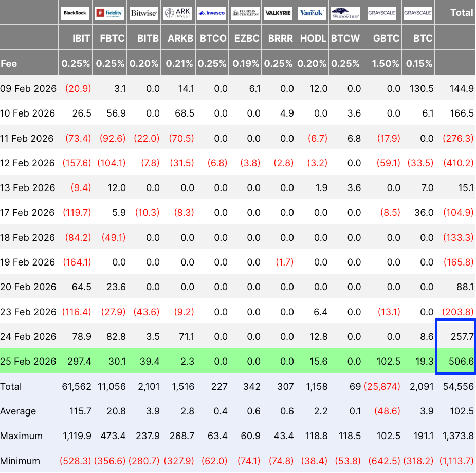 Spot Bitcoin ETF inflows attracted half a billion dollars in inflows on Wednesday.