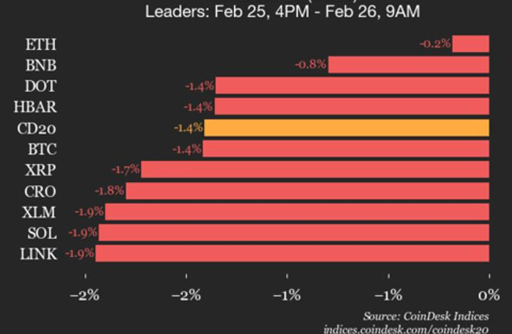 Leaders: ETH (-0.2%) and BNB (-0.8%).