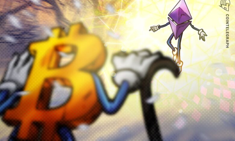 Over the past seven days, the ETH/BTC ratio, which measures Ether’s relative strength to Bitcoin, is up 3.58%, according to TradingView.