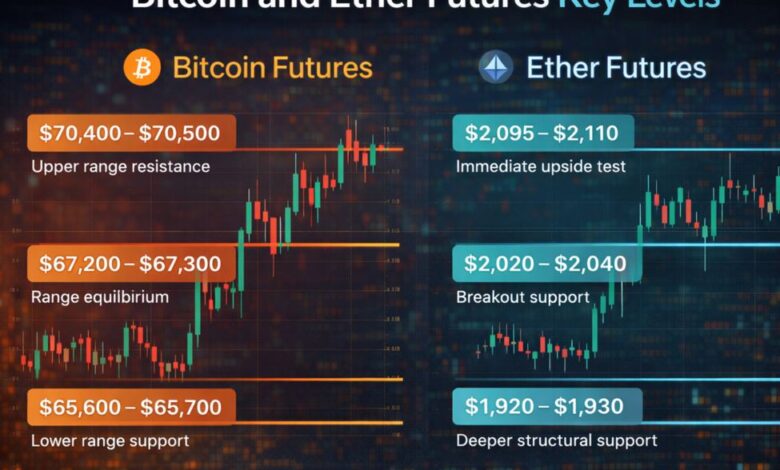 Crypto futures are starting the session with a constructive tone, though the picture remains more nuanced than a simple breakout story. Bitcoin is once again probing the upper edge of its recent range, while Ether continues to show a steady improvement in participation and structure.