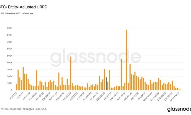The air pocket refers to a thin area of supply between $72,000 and $80,000, where relatively few coins last changed hands, according to data from Glassnode.