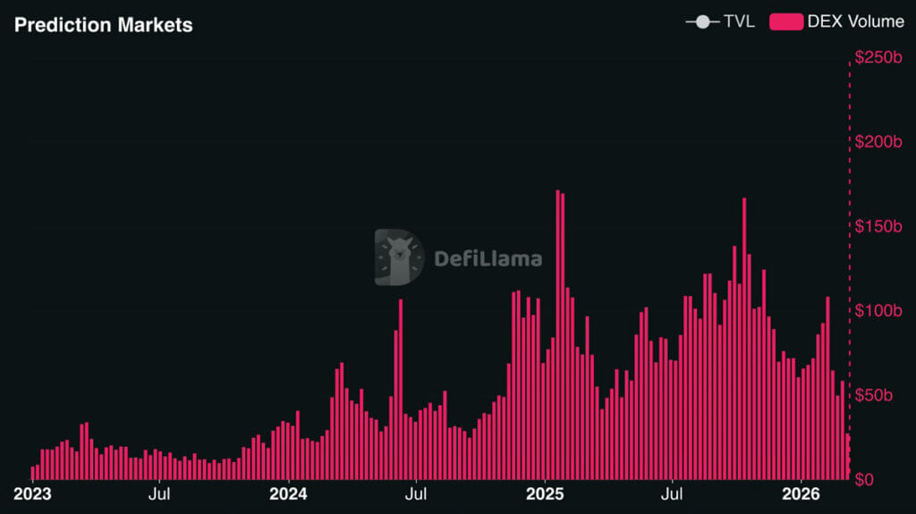 Onchain prediction markets have seen major spikes in trading volumes since the start of 2024, approaching $166B mid-October 2025.
