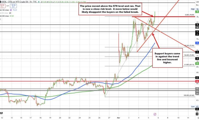 Oil price climbs above the $78 level