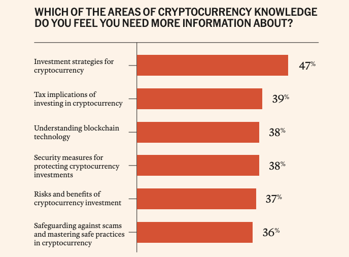 More than one-third of the respondents indicated that they wanted more education on the tax implications of digital assets, according to the NCA.