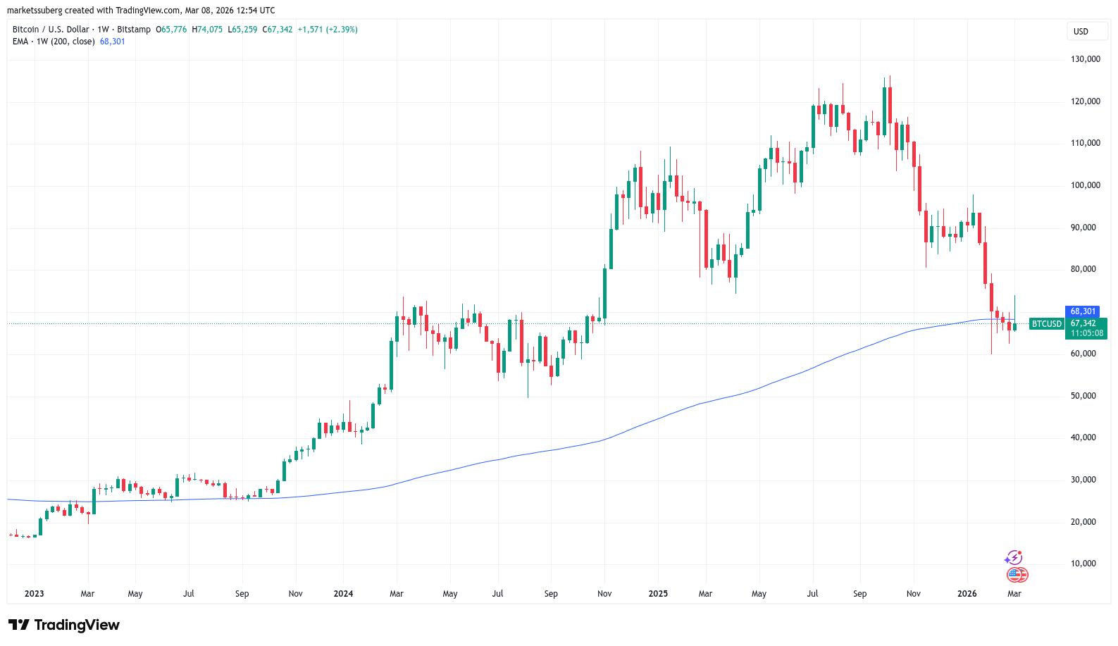 BTC/USD one-week chart with 200 EMA. Source: Cointelegraph/TradingView