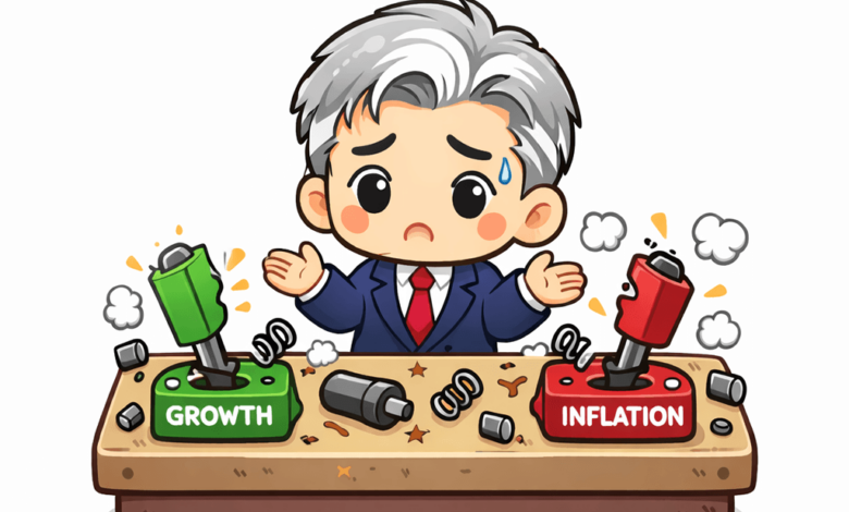 - To support growth → cut rates → borrowing gets cheaper → but that pours fuel on already-rising inflation