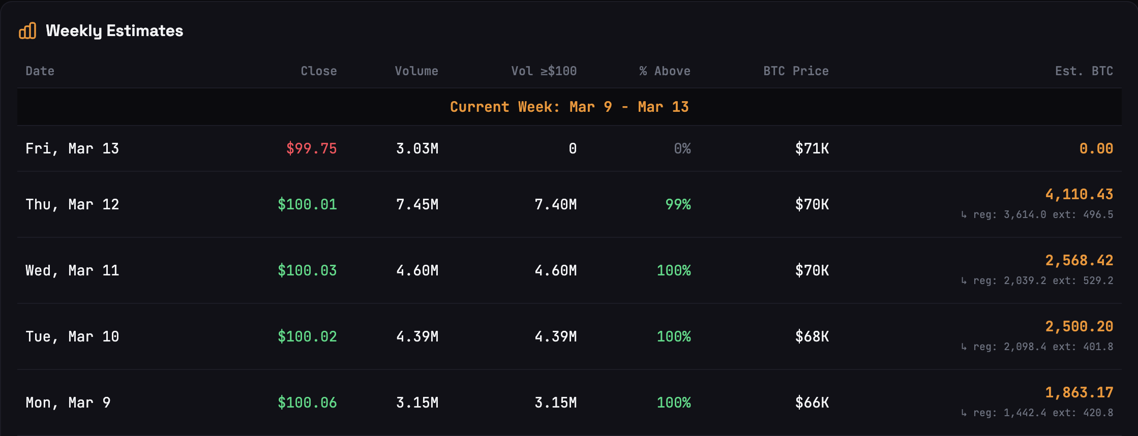 STRC weekly data (March 9–13). Source: STRC.LIVE