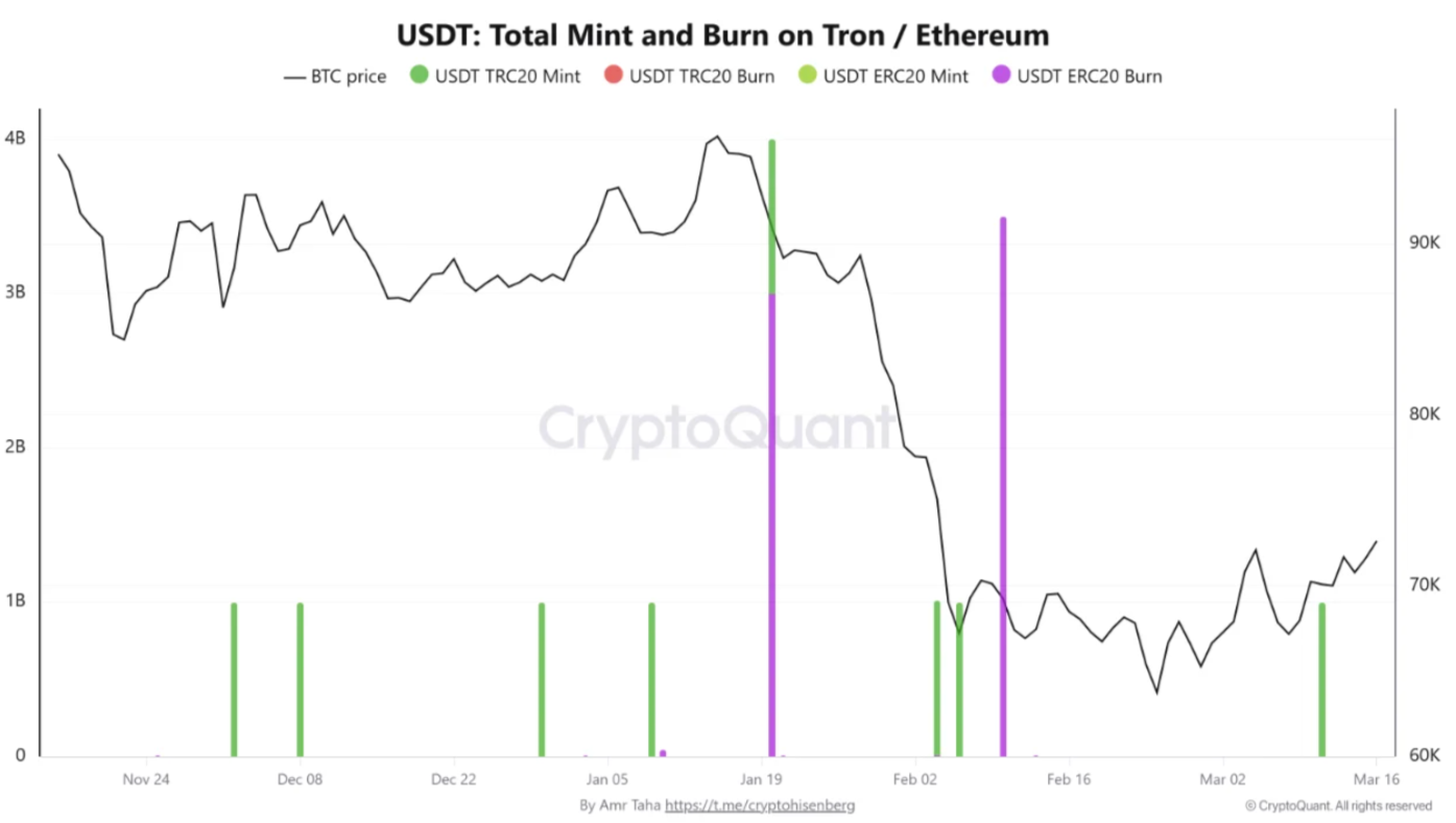 On March 11, meanwhile, a $1 billion minting of the largest stablecoin USDt (USDT) on the Tron network occurred in a significant liquidity event.