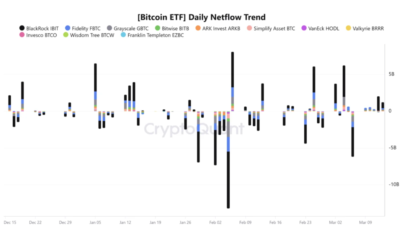 At the same time, the US spot ETFs have seen net inflows every trading day since March 9.