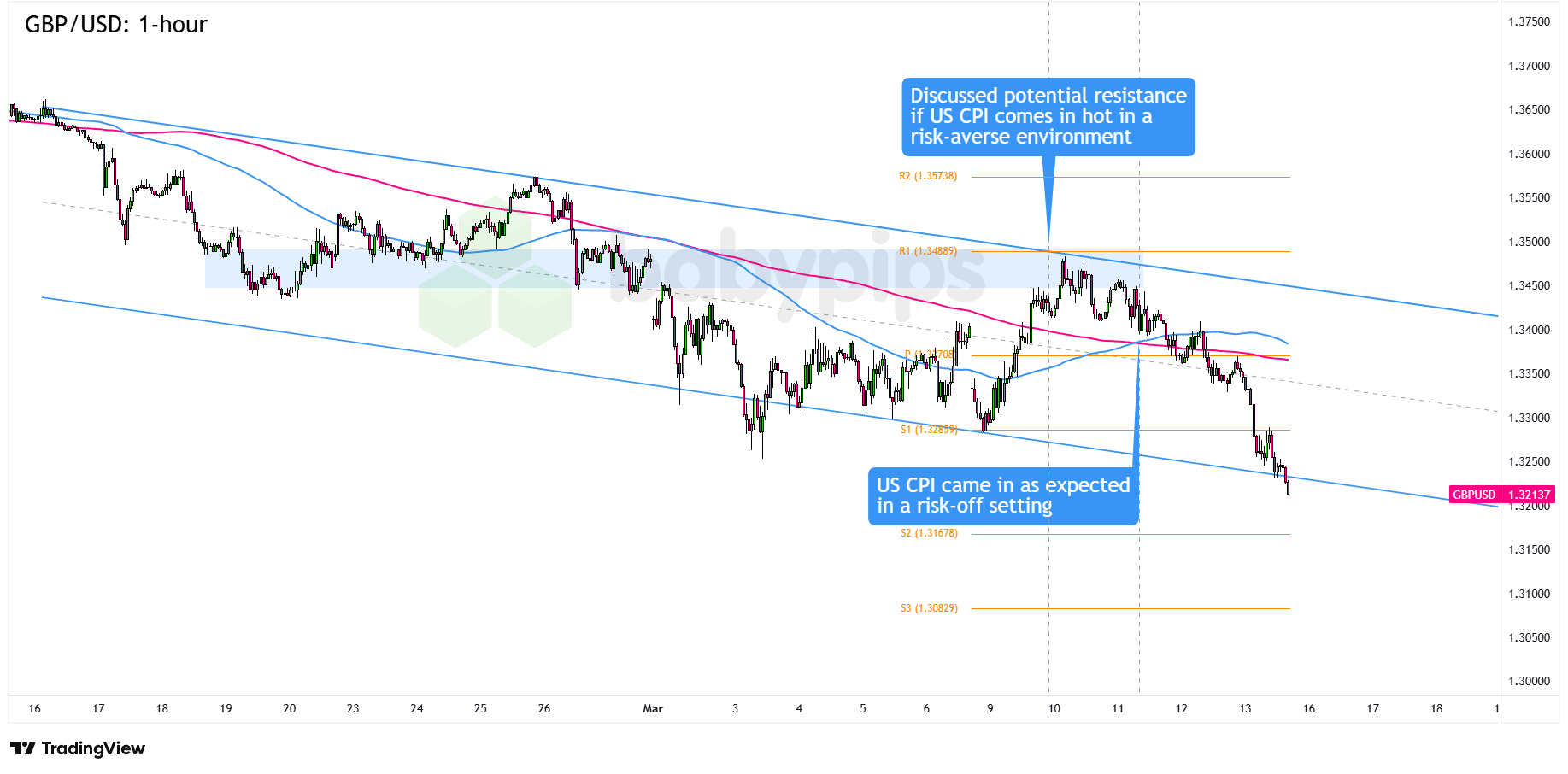 Our bearish GBP/USD watchlist idea was based on a descending channel resistance test ahead of the U.S. CPI release, predicting that the area of interest could hold as a ceiling if the actual figures beat estimates.