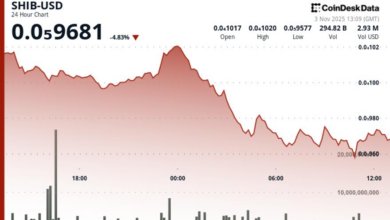 تكنلوجيا اليوم 2025-11-03 13:30:00 SHIB$0.0₅9630, the world’s second-largest meme token by market value, has dropped over 5% in 24 hours,…