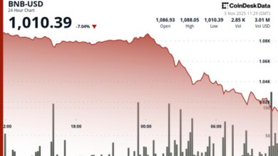 تكنلوجيا اليوم 2025-11-03 14:03:00 BNB Chain’s native token, BNB, slid more than 6% in the past 24 hours, falling from…