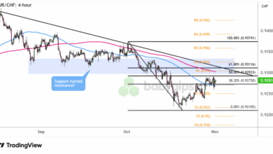 2025-11-03 03:47:00 EUR/CHF has been cruising below a descending trend line on its 4-hour time frame and looks ready to…