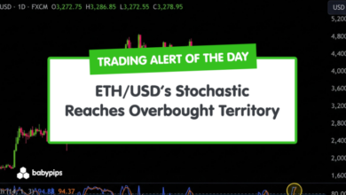 TA Alert of the Day: ETH/USD’s Stochastic Reaches Overbought Territory