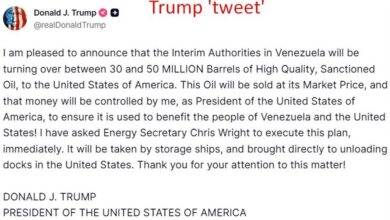 OIL – Trump says tens of millions of Venezuelan barrels to flow to U.S. markets