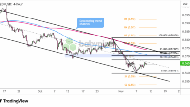 2025-11-12 02:23:00 NZD/USD has formed lower highs and lower lows within a descending channel on its 4-hour time frame. Are…