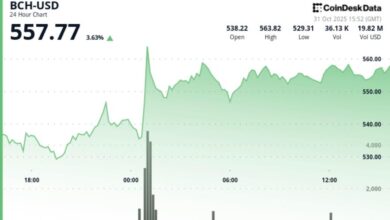 تكنلوجيا اليوم 2025-10-31 16:24:00 According to CoinDesk Research technical analysis data model, BCH$555.06 pushed through $550 on a heavy-volume burst,…