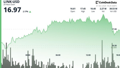 تكنلوجيا اليوم 2025-10-31 18:39:00 The native token of oracle network Chainlink LINK$17.00 bounced 3.6% on Friday, reversing some of Thursday’s…